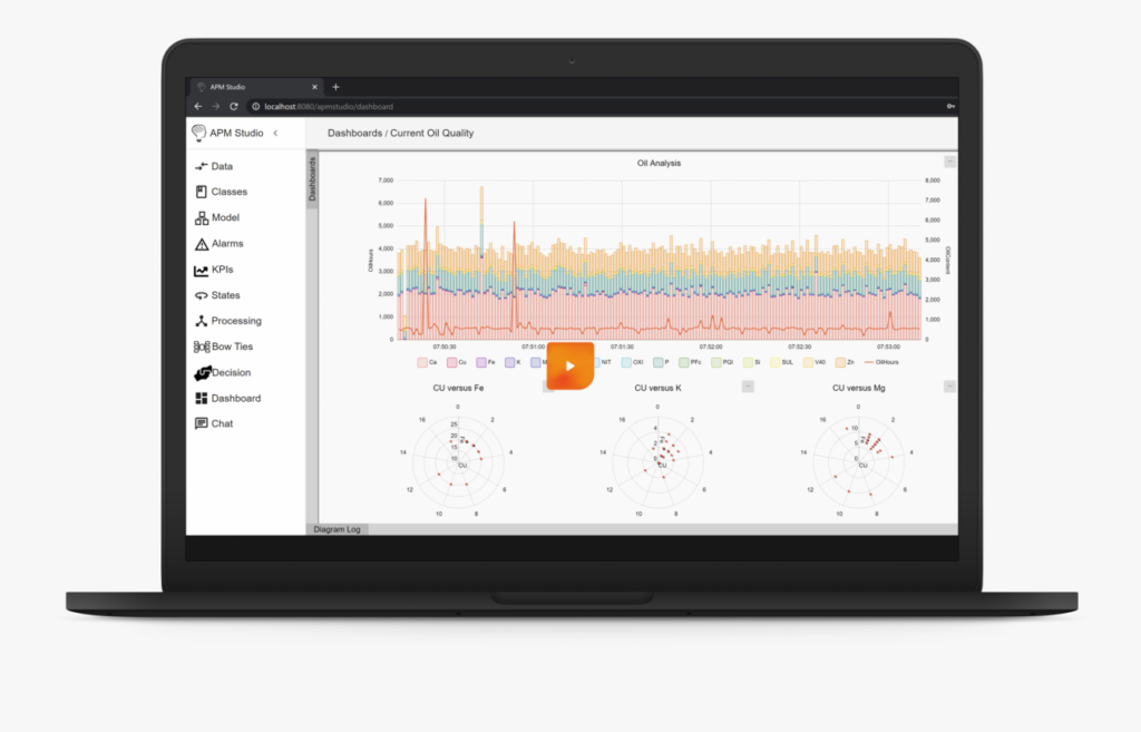 APM Studio is a low-code platform for OEMs, asset owners, and service providers to quickly build and deploy industrial applications. It combines real-time data, analytics (ML, Bowtie, logic), and semantic models in one environment—letting you digitize expertise and deliver branded, IP-protected solutions.